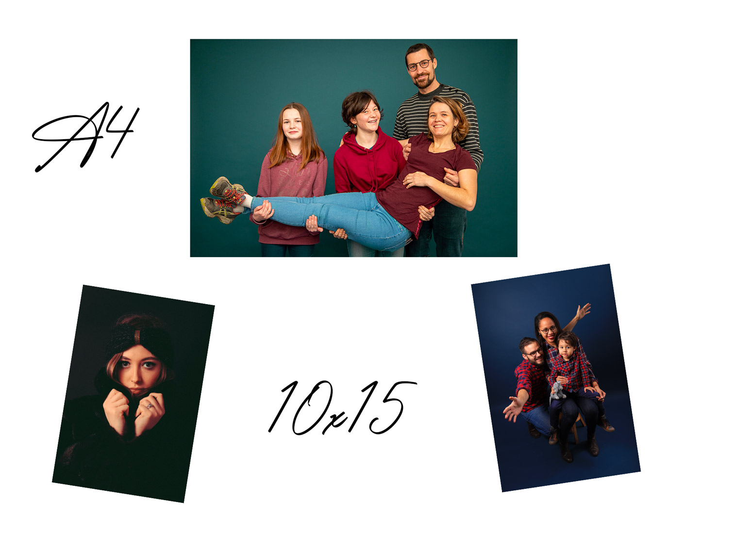 Impression de 3 photos aux formats (2 photos 10×15 + 1 A4)